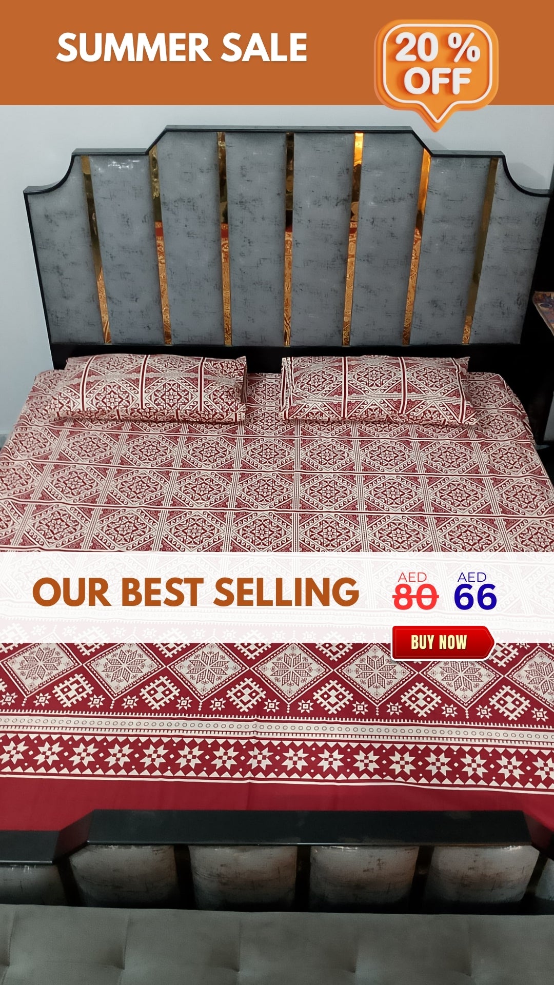 Enhance your bedroom with luxury bed sheets designed for ultimate comfort. This king size bed sheets set (240x245 cm) is crafted from 100% premium cotton, offering a soft, breathable, and durable feel for a restful sleep. The set includes two matching pillowcases, complementing the bedspread with elegance. Perfect for all seasons, this bed linen ensures long-lasting use with a gentle touch on your skin. Whether you're looking for fitted sheets, silk bed sheets, or stylish sheets on sale, this bedding set blends comfort and sophistication effortlessly. Ideal for upgrading your space or as a thoughtful gift!