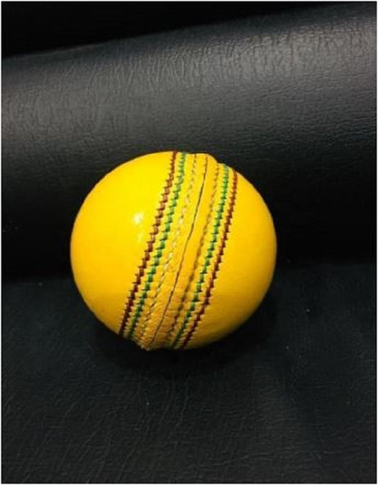 Indoor Leather Cricket Ball (Yellow) - Durable Practice Ball for Indoor Training Sessions